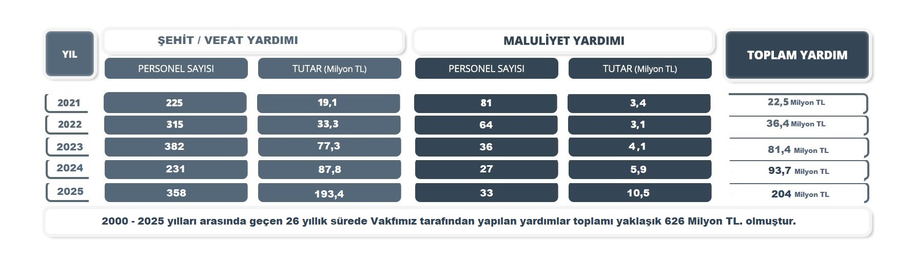 Yıl yıl yapılan yardımlar