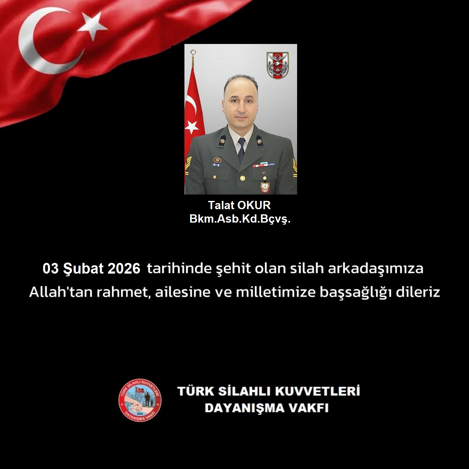 Bkm.Asb.Kd.Bçvş. Talat OKUR 4.02.2026 Fotoğraflar Diğerleri 12.11.2025 Askeri kargo uçağı düşmesi nedeniyle 11 Kasım 2025 tari... 13.10.2025 J. Asb.Kd.Çvş. Tacettin GÜN, J.Asb.Kd.Çvş. Hakkı ERYILM... 30.09.2025 J.Asb.Çvş. Kemal ÖZGÜR Uzm.J.VI.Kad.Çvş. Arif ÖZDEMİR 18.09.2025 P.Uzm.Çvş. Hüseyin GÜNAY 20.08.2025 P.Ütğm. Nuri Melih BOZKURT 30.07.2025 Topçu Uzm.Çvş. Servet Ökkseş ÇAKIR Tümünü Gör
