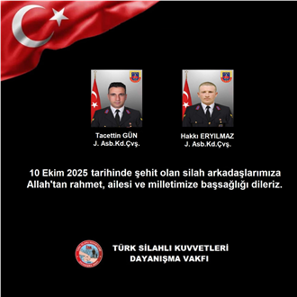 J. Asb.Kd.Çvş. Tacettin GÜN, J.Asb.Kd.Çvş. Hakkı ERYILMAZ 13.10.2025 Fotoğraflar Diğerleri 30.09.2025 J.Asb.Çvş. Kemal ÖZGÜR Uzm.J.VI.Kad.Çvş. Arif ÖZDEMİR 18.09.2025 P.Uzm.Çvş. Hüseyin GÜNAY 20.08.2025 P.Ütğm. Nuri Melih BOZKURT 30.07.2025 Topçu Uzm.Çvş. Servet Ökkseş ÇAKIR 28.07.2025 J.Uzm.Çvş. Mehmet Ali YILDIRIM 23.07.2025 Hv.Svn.Ütğm. Tuğrul ÖZSU Tümünü Gör