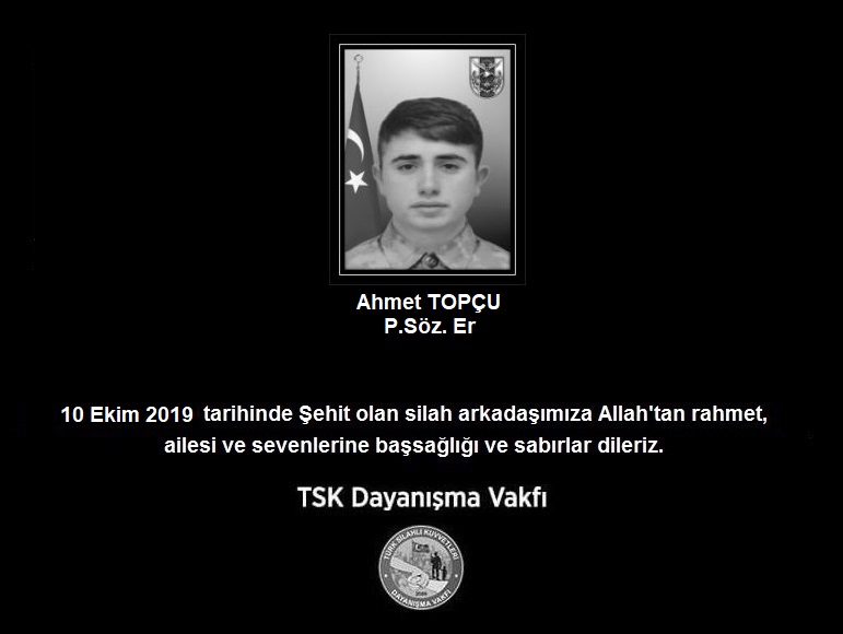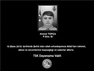 P.Söz. Er Ahmet TOPÇU 11.10.2019 Fotoğraflar Diğerleri 12.11.2025 Askeri kargo uçağı düşmesi nedeniyle 11 Kasım 2025 tari... 13.10.2025 J. Asb.Kd.Çvş. Tacettin GÜN, J.Asb.Kd.Çvş. Hakkı ERYILM... 30.09.2025 J.Asb.Çvş. Kemal ÖZGÜR Uzm.J.VI.Kad.Çvş. Arif ÖZDEMİR 18.09.2025 P.Uzm.Çvş. Hüseyin GÜNAY 20.08.2025 P.Ütğm. Nuri Melih BOZKURT 30.07.2025 Topçu Uzm.Çvş. Servet Ökkseş ÇAKIR Tümünü Gör